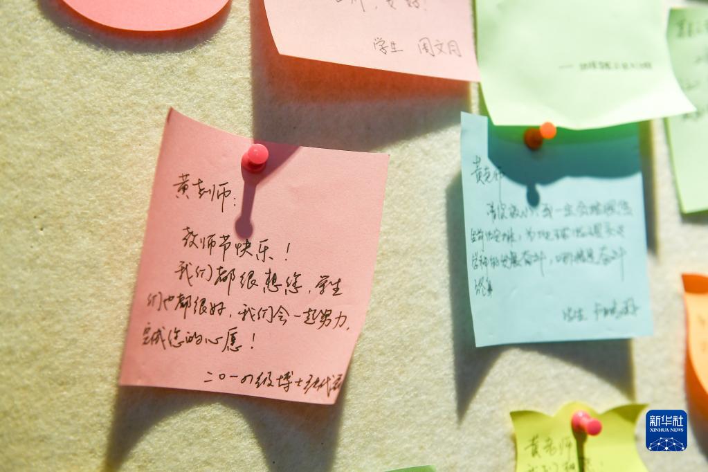 在位于吉林大学地球探测科学与技术学院的黄大年纪念馆,学生们留下缅怀黄大年老师的话语(9月9日摄)。