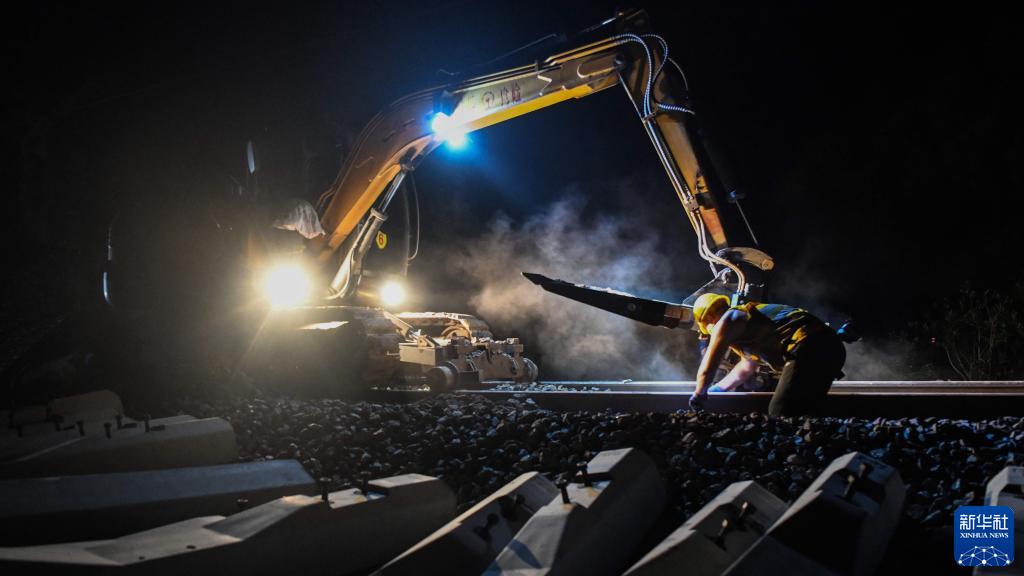 在西部陆海新通道枢纽城市——广西钦州市,司职电务、工务、车务等不同工种的铁路工人们,不辞辛苦,夜以继日地轮作,换枕、检修电网、巡检栅栏护墙,确保西部陆海新通道的安全畅通。