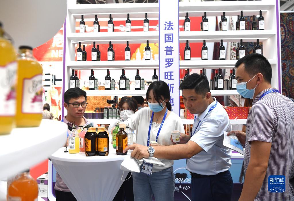 9月10日,参观者在“一带一路”国际展区品尝法国饮品。