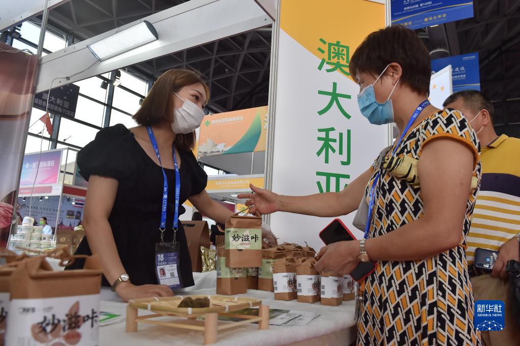 9月10日,澳大利亚参展商向观众介绍巧克力产品。
