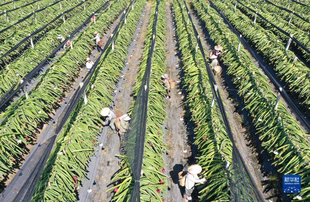 近日,云南省西双版纳傣族自治州景洪市种植的火龙果、柚子等特色农产品进入收获季,当地农民抢抓晴好天气采摘并销往各地。近年来,景洪市因地制宜调整农业产业结构,鼓励引导农民发展特色种植,促进农民增收,助力乡村振兴。