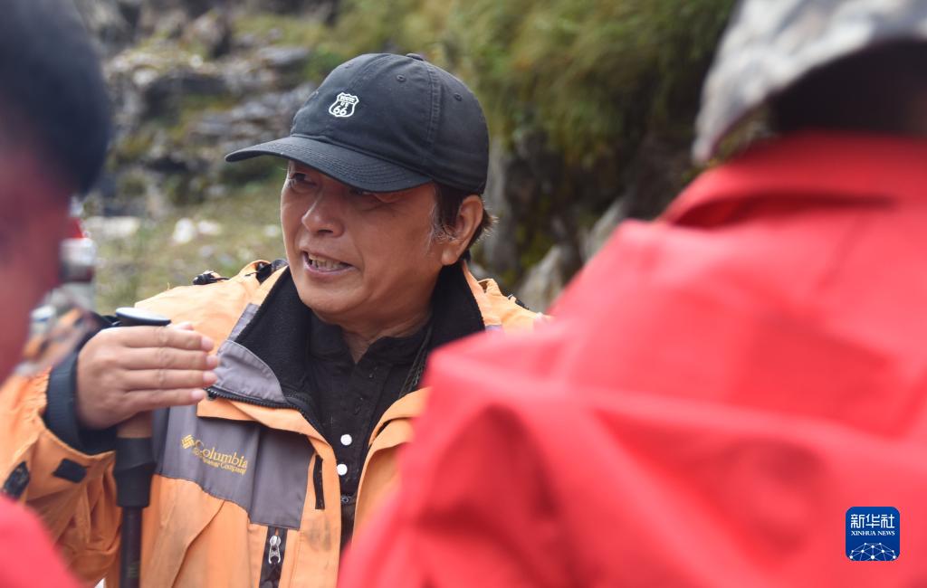 9月7日,在西藏日喀则市区域内的喜马拉雅山脉,中科院地理科学与资源研究所客座教授李渝生和年轻的科考队员分析问题。