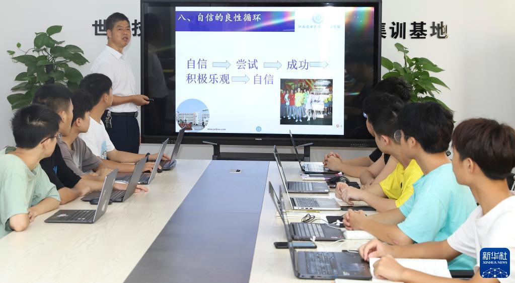 江西省电子信息工程学校教师赖勋忠(后)在电气装置技能工作室给学生们授课(9月9日摄)。