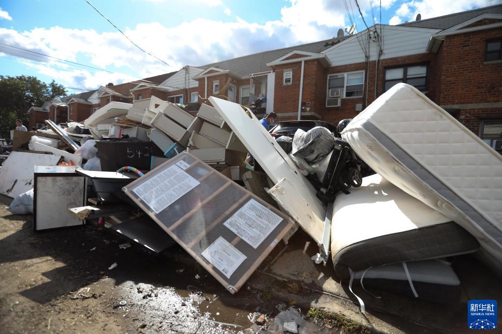 9月3日,在美国纽约昆斯区,街边堆放着被损毁的家具。