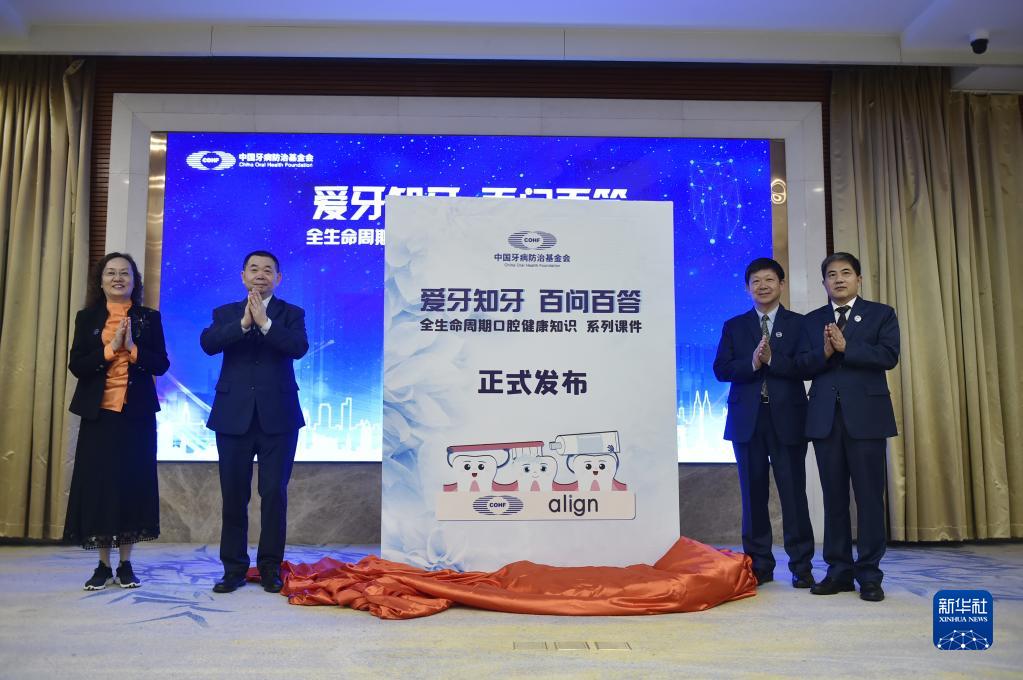 9月11日,嘉宾在现场共同发布“爱牙知牙 百问百答”——全生命周期口腔健康知识系列课件。
