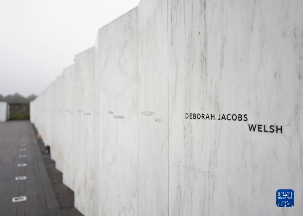 9月9日,在美国宾夕法尼亚州尚克斯维尔的93号航班国家纪念园,墙上刻有遇难者的名字。