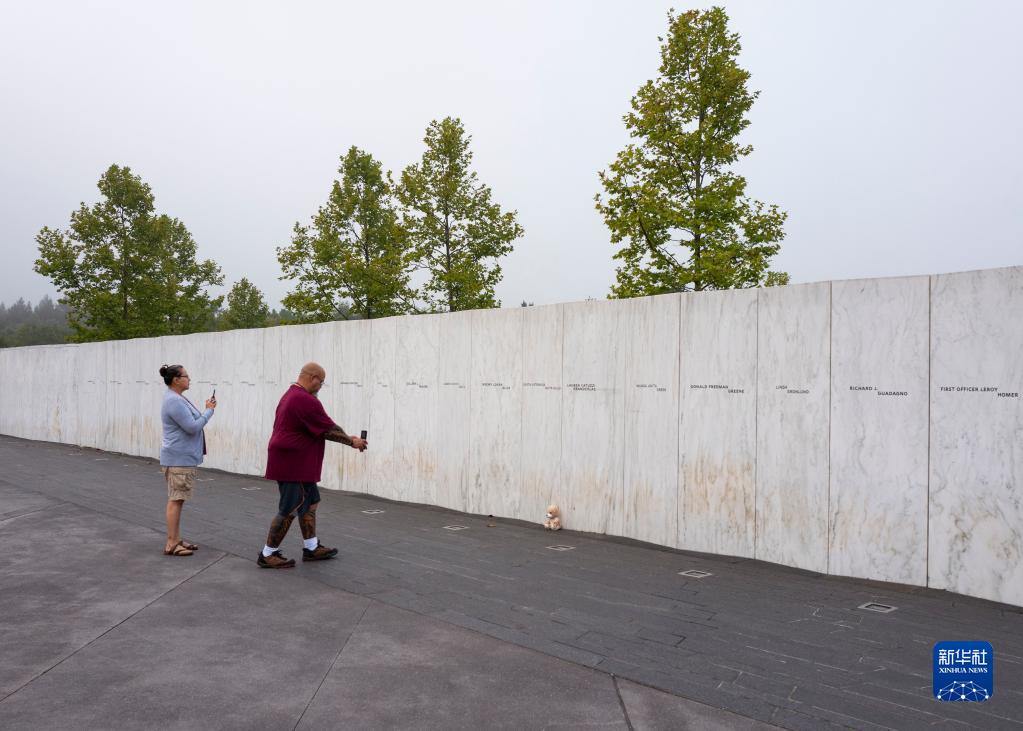 9月9日,在美国宾夕法尼亚州尚克斯维尔的93号航班国家纪念园,墙上刻有遇难者的名字。