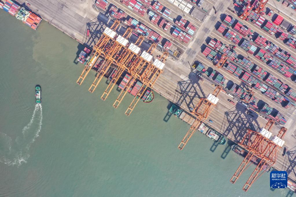 这是广西钦州港集装箱码头(1月14日摄,无人机照片)。