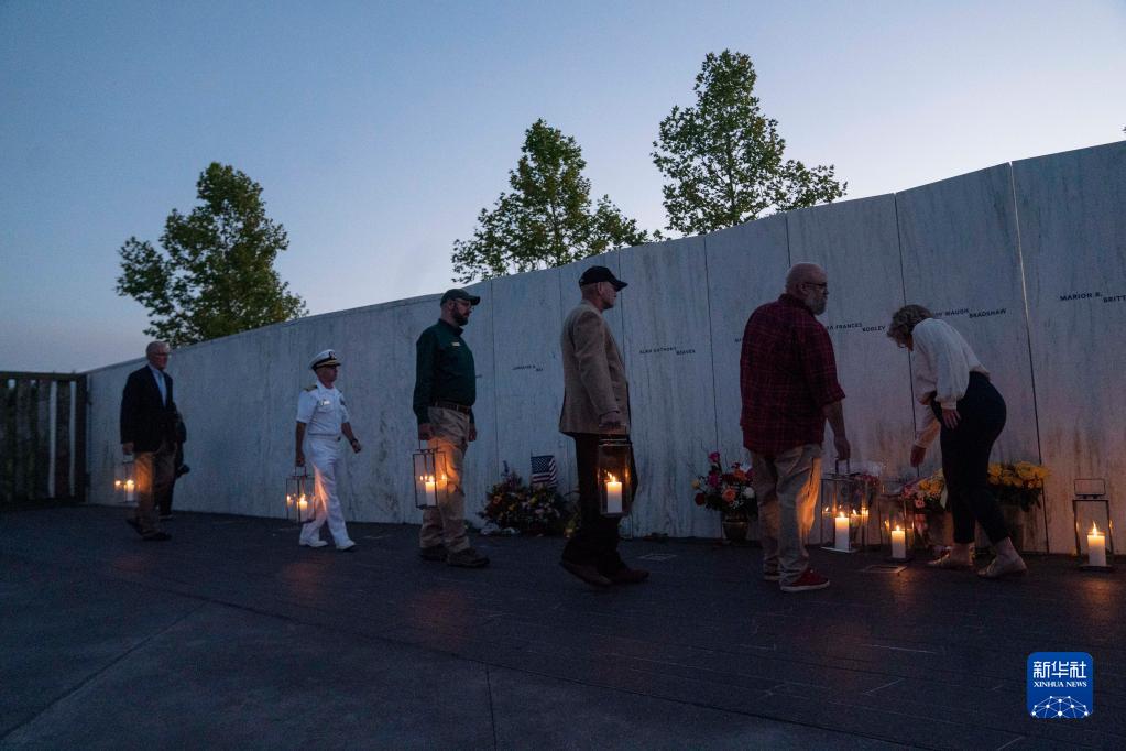 当日,“9·11”事件中93号航班乘客和机组人员的家人、朋友等在宾夕法尼亚州尚克斯维尔的93号航班国家纪念园举行烛光纪念活动,将40盏蜡烛灯摆放到刻有遇难者名字的纪念墙前。2001年9月11日,恐怖分子劫持民航班机,冲向美国经济、军事和政治的地标建筑。美联航93号航班是其中第四架也是最后一架,坠毁在宾夕法尼亚州尚克斯维尔附近的乡村。