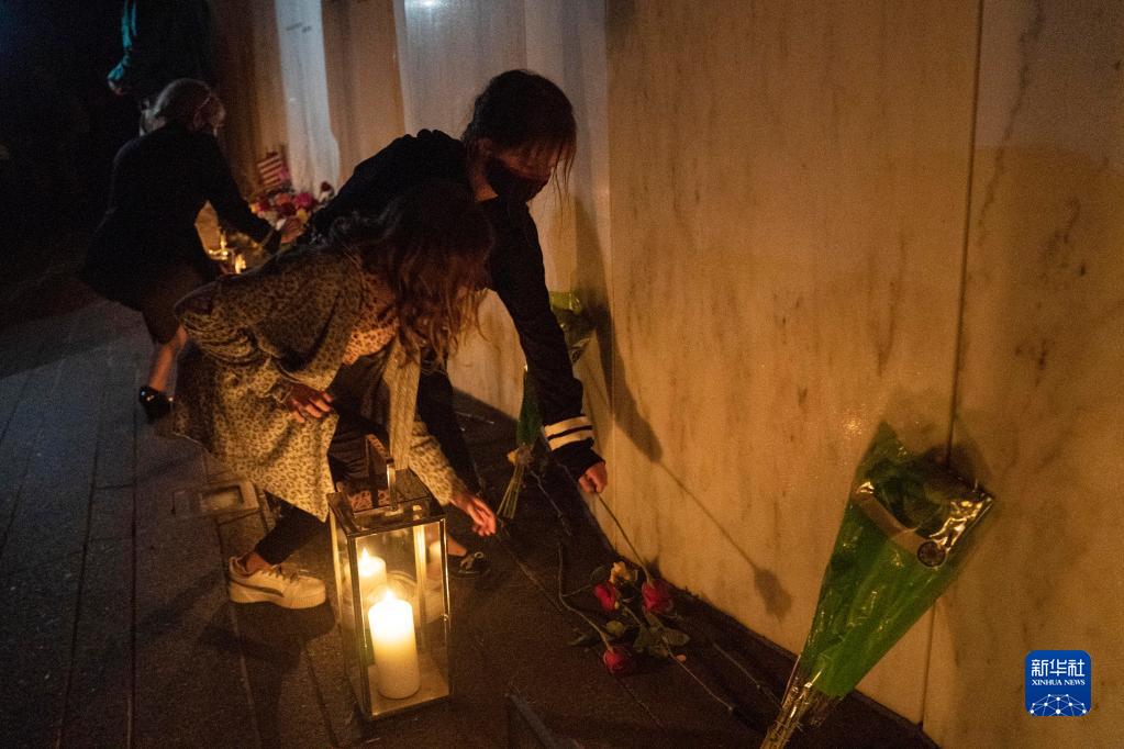 9月10日,在美国宾夕法尼亚州的93号航班国家纪念园,人们在遇难者纪念墙前献花。