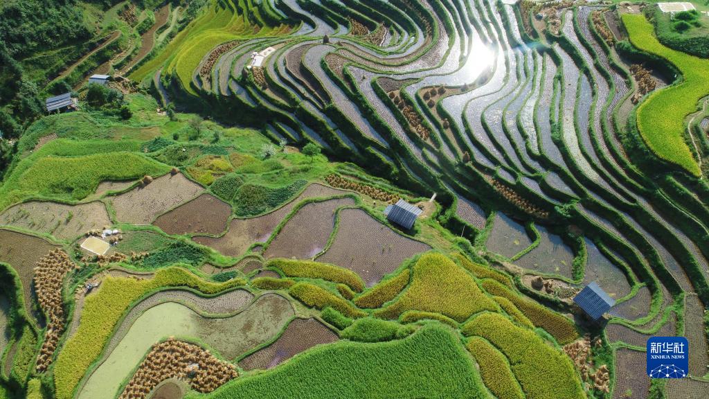 时下,在贵州省黔东南苗族侗族自治州从江县加榜乡,梯田里种植的稻谷喜获丰收,当地村民忙着收割、晾晒,乡间梯田一派丰收景象。