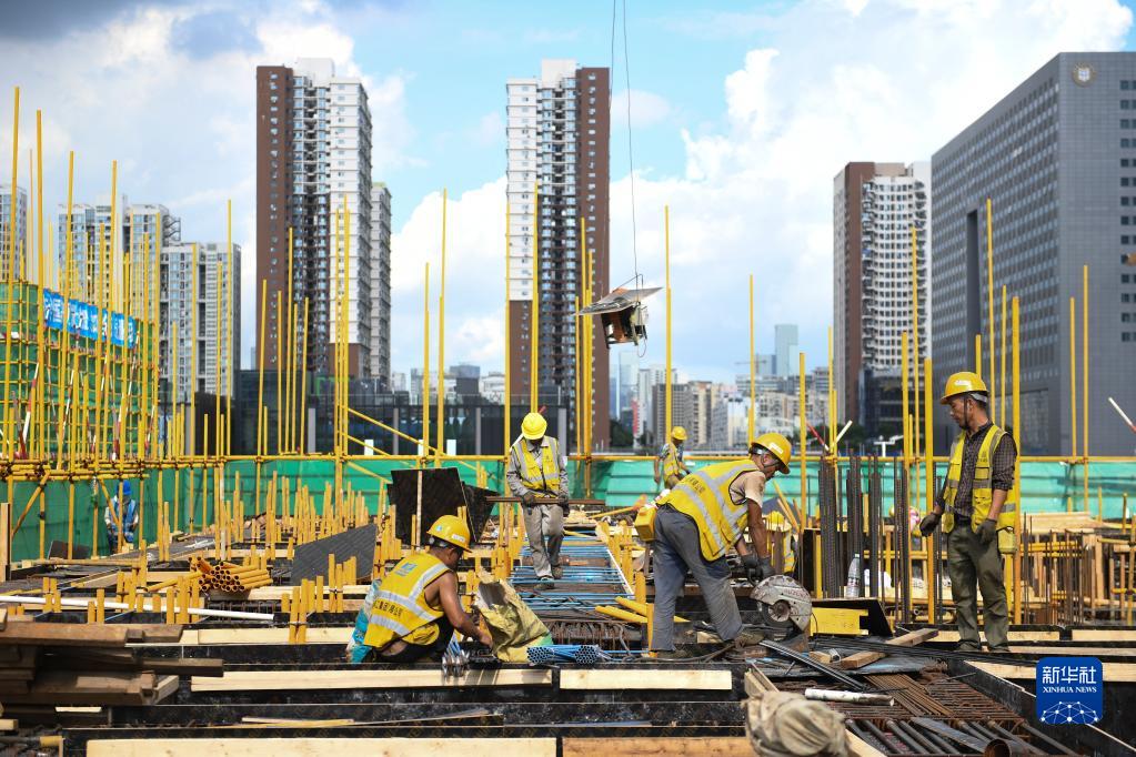 9月8日,施工人员在深圳前海交易广场T4栋项目现场工作。