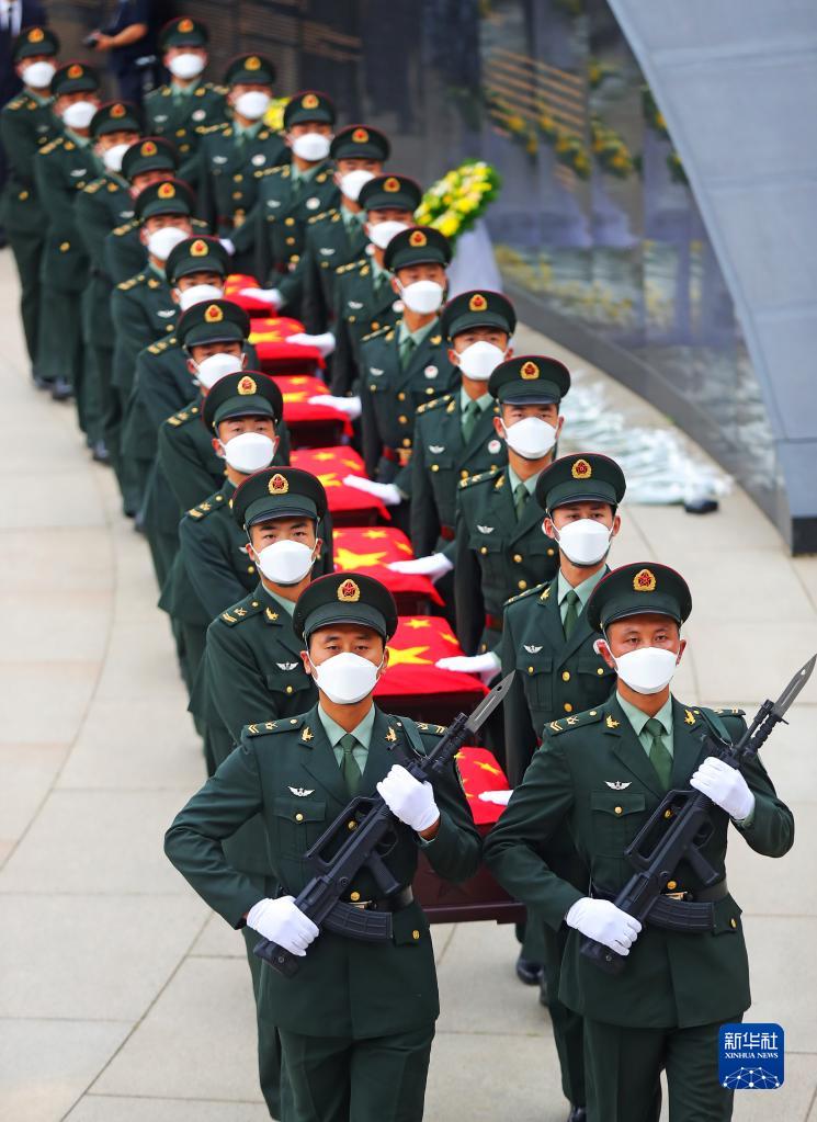 9月3日,礼兵护送志愿军烈士遗骸棺椁进入沈阳抗美援朝烈士陵园安葬地宫。当日,第八批在韩中国人民志愿军烈士遗骸安葬仪式在沈阳抗美援朝烈士陵园举行,109名为国战斗牺牲在异国他乡的志愿军英烈在祖国的大地上安息。