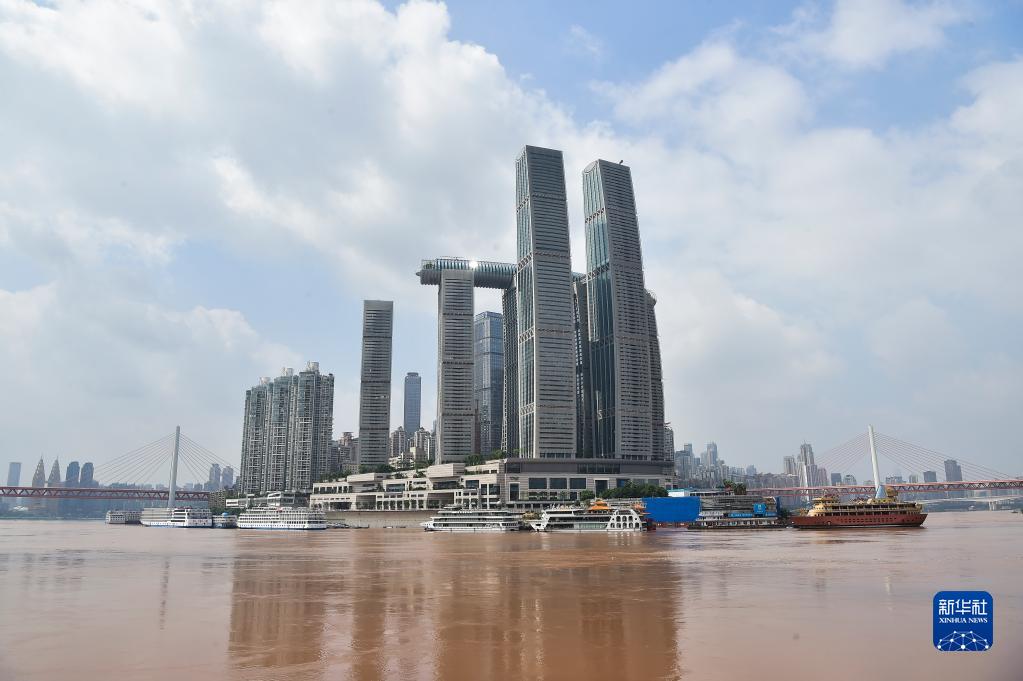 9月7日,船只停靠在重庆朝天门码头。当日,“长江2021年第1号洪水”过境重庆中心城区。