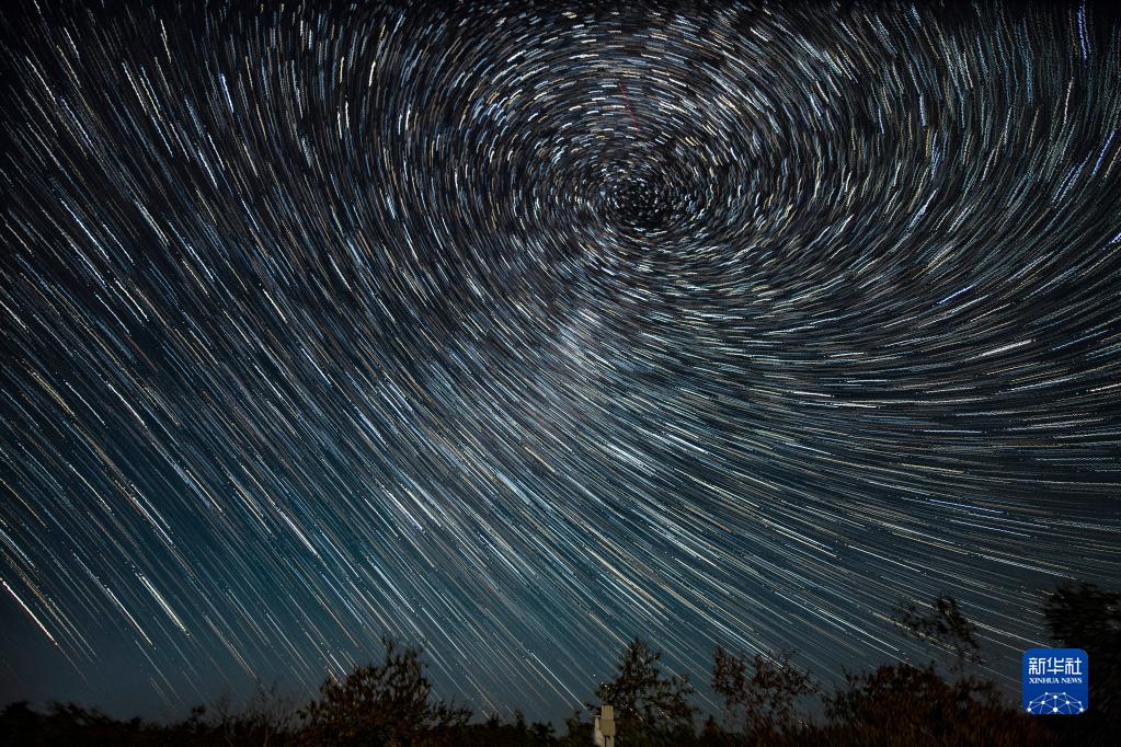 在五大连池世界地质公园温泊拍摄的星空(9月1日摄,合成照片)。