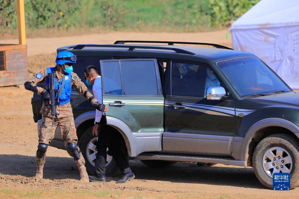 9月11日是“共同命运-2021”国际维和实兵演习专业分训阶段的最后一天,15时始,中国、蒙古国、巴基斯坦、泰国等国参演官兵,在陆军确山某训练基地维和训练营地进行了训练观摩交流。新华社记者 刘芳 摄