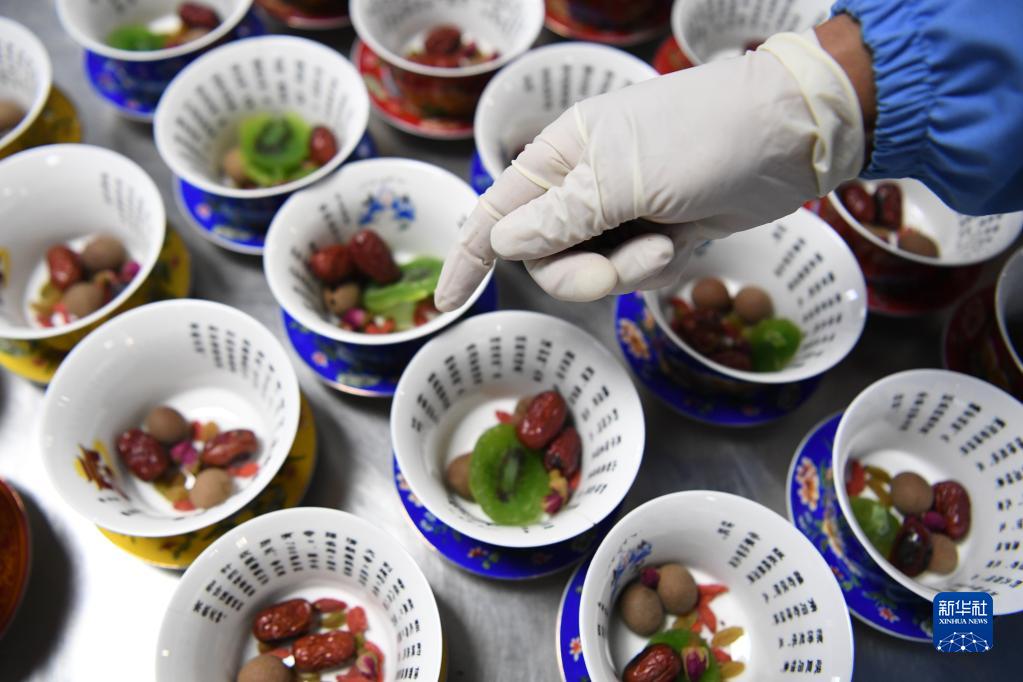 工作人员给盖碗茶配料供游客品尝(9月11日摄)。