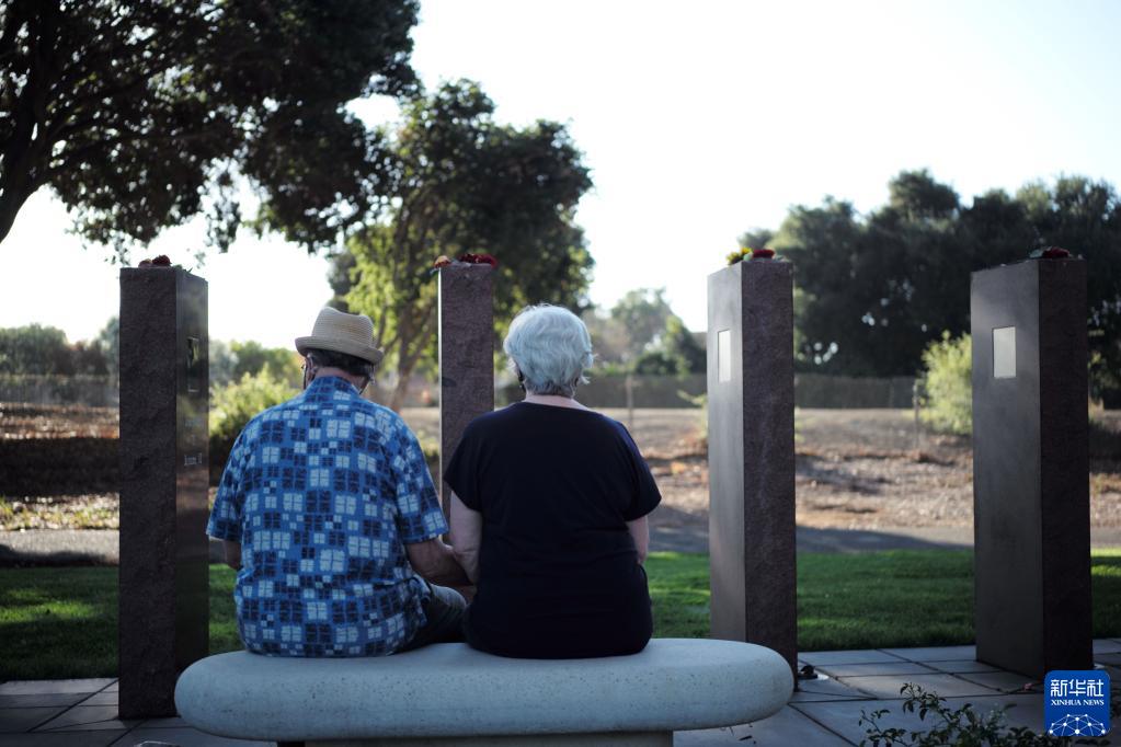 9月11日,市民在美国旧金山湾区尤宁城的93号航班纪念园悼念遇难者。