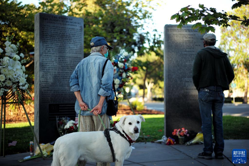 9月11日,市民在美国旧金山湾区尤宁城的93号航班纪念园悼念遇难者。新华社记者吴晓凌摄