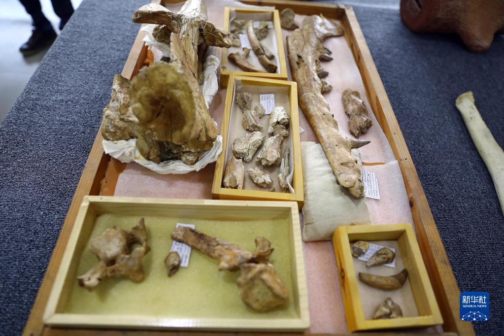 这是9月4日在埃及达卡利亚省曼苏拉大学脊椎动物古生物学研究中心拍摄的半水生鲸化石。