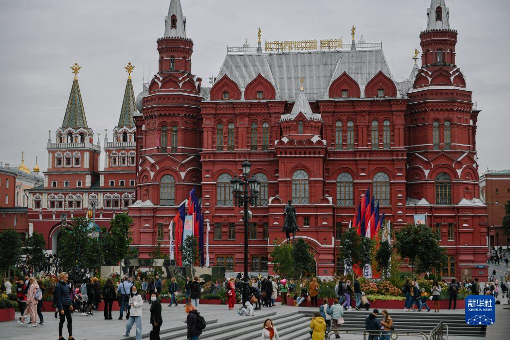9月11日,人们在俄罗斯首都莫斯科市中心漫步。