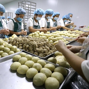 中秋节临近,月饼迎来消费旺季,各地月饼生产企业抓紧加工、制作月饼,供应市场。