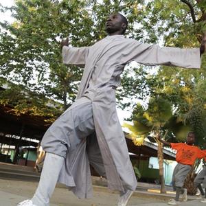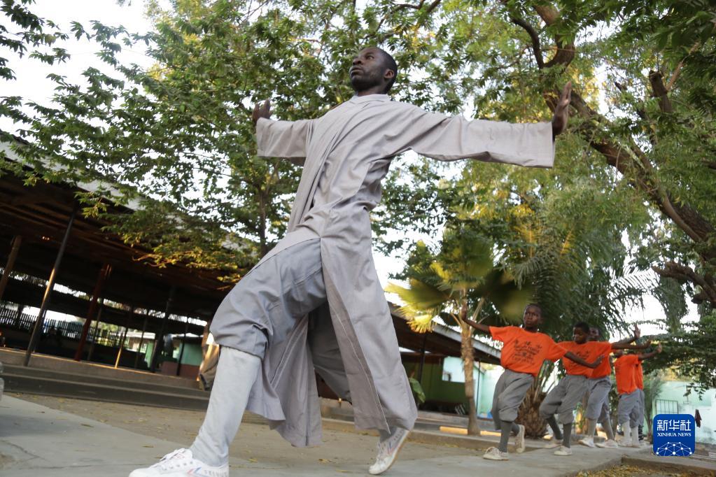 9月7日,在坦桑尼亚最大城市达累斯萨拉姆,赛义迪·姆福米带领弟子们练习中国功夫。