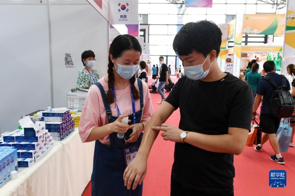 9月12日,在广西南宁国际会展中心,一名男子在体验来自韩国的展品。