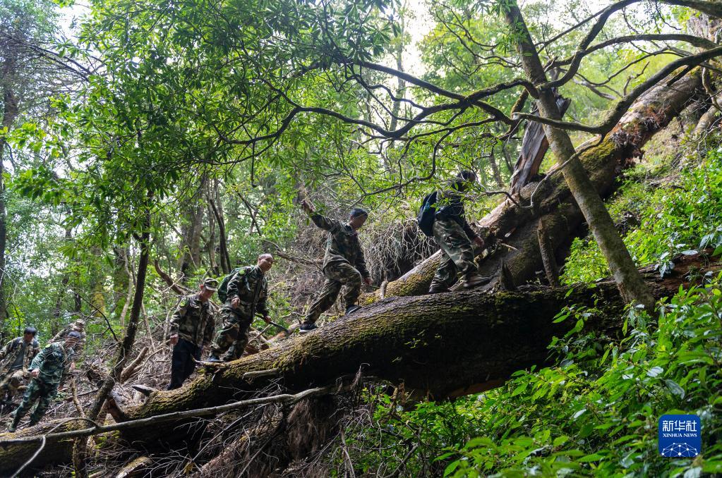 高黎贡山国家级自然保护区泸水专职巡护队在山间巡护(3月12日摄)。新华社记者 陈欣波 摄