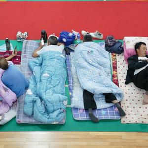 9月14日,群众在位于上海浦东的临时安置点内休息。