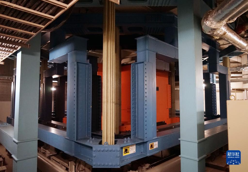 9月13日拍摄的上海环球金融中心的阻尼器装置。该装置在90层(距地面约394米)设置有2台,重量各为150吨,旨在减轻强风对大楼的晃动。