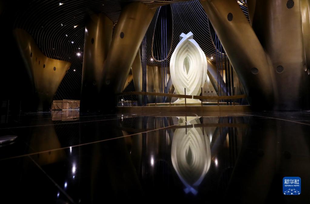 上海中心大厦126层“电涡流摆式调谐质量阻尼器”上方的“上海慧眼”艺术雕塑(7月27日摄)。