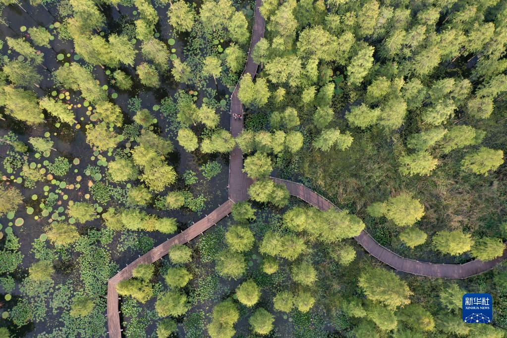 俯瞰池杉林(9月14日摄,无人机照片)。