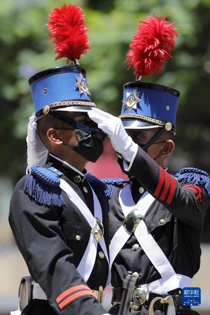 9月14日,在洪都拉斯首都特古西加尔巴,站岗士兵整理着装。