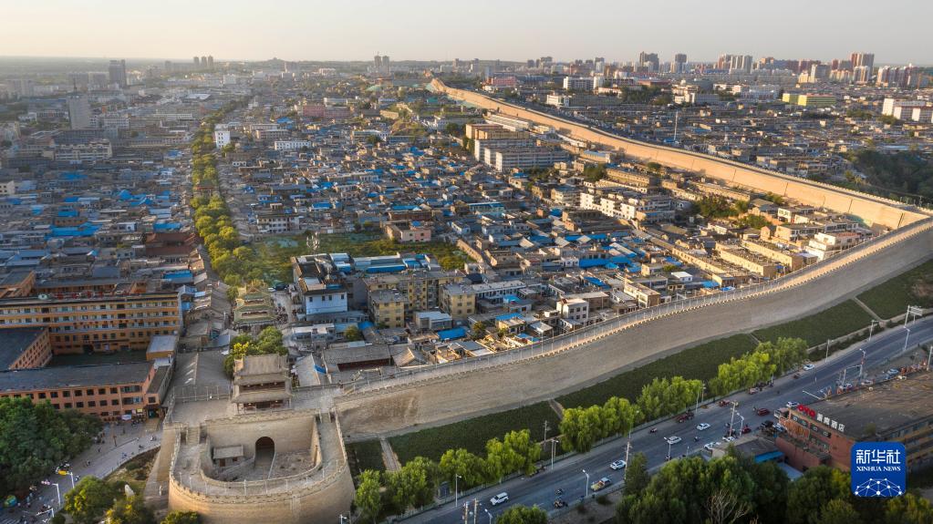 榆林市老城区及城墙(9月11日摄,无人机照片)。榆林建城历史悠久,老城至今仍被古城墙围绕着。
