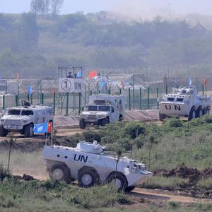 9月15日,在“共同命运-2021”国际维和实兵演习综合演练中,中国直升机分队展开空中警戒巡逻。