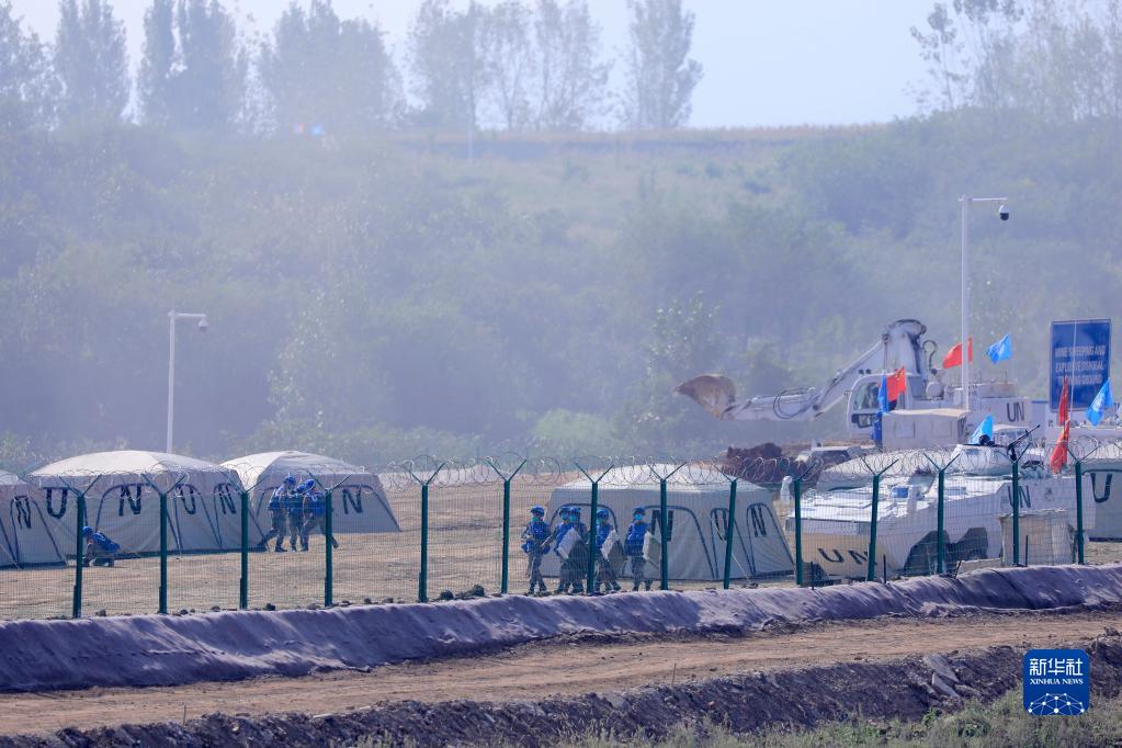 9月15日,在“共同命运-2021”国际维和实兵演习综合演练中,参演官兵展开临时行动基地建立。