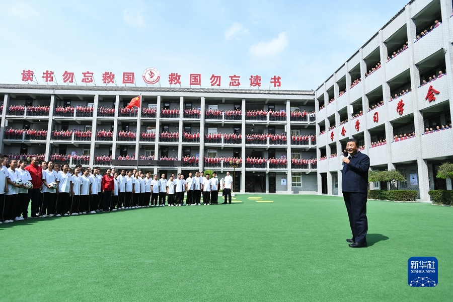 9月13日至14日,中共中央总书记、国家主席、中央军委主席习近平在陕西省榆林市考察。这是14日上午,习近平在绥德实验中学考察时,同师生亲切交流。
