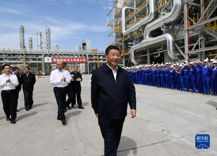 9月13日至14日,中共中央总书记、国家主席、中央军委主席习近平在陕西省榆林市考察。这是13日上午,习近平在国家能源集团榆林化工有限公司年产40万吨乙二醇项目现场考察。