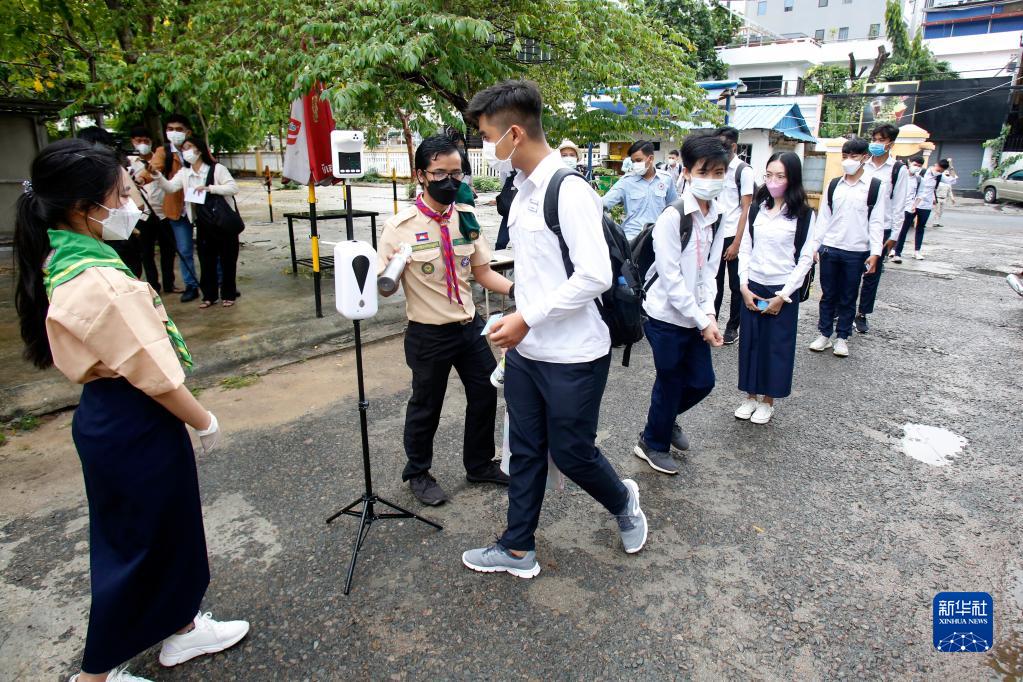 15日起,柬埔寨金边市公立和私立初中、高中学校陆续开始复课。据了解,学校需要达到卫生部相关防疫要求才能复课,返校学生必须出示新冠疫苗接种卡。