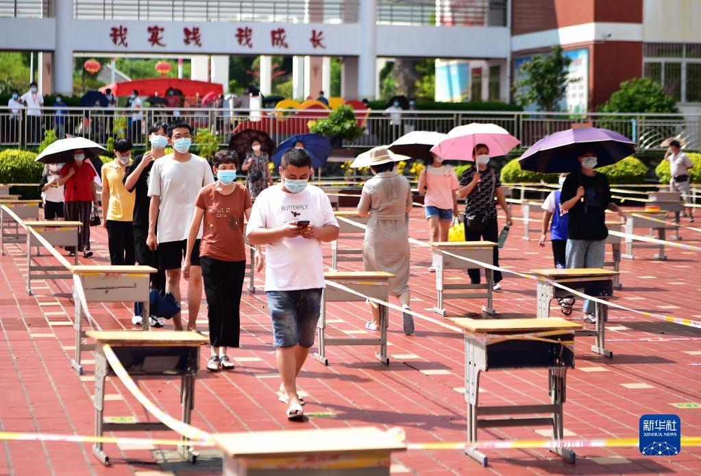 9月16日,社区群众排队进入仙游县鲤南中心小学核酸检测点。