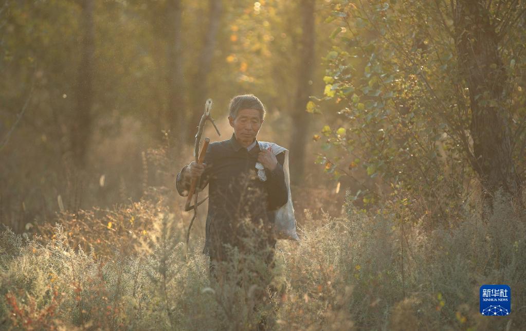 侯贵在彰武县四合城镇林地中巡视(2019年10月8日摄)。