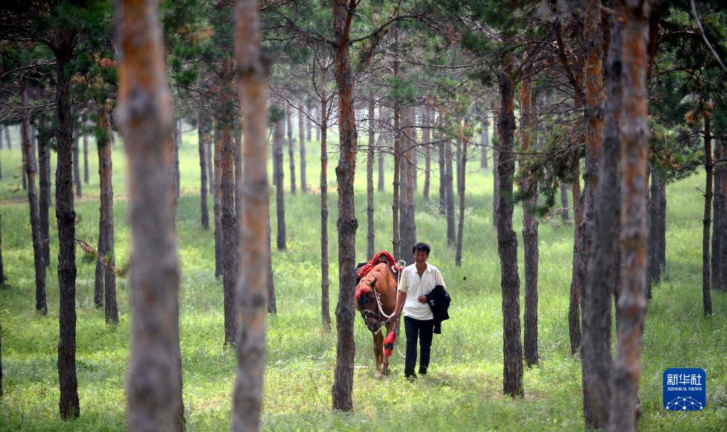 彰武县阿尔乡护林员李东魁在森林中巡查(2013年8月3日摄)。