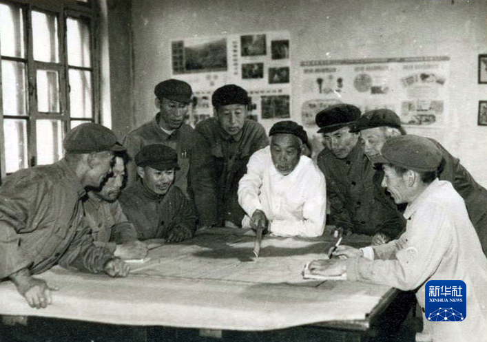 20世纪80年代,时任辽宁固沙造林研究所所长刘斌(中着白衣者)带领科技人员进行规划(资料照片)。
