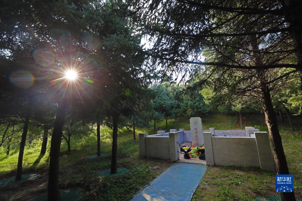 这是辽宁省固沙造林研究所前所长刘斌的墓地,他埋葬在章古台的松林里(8月30日摄)。