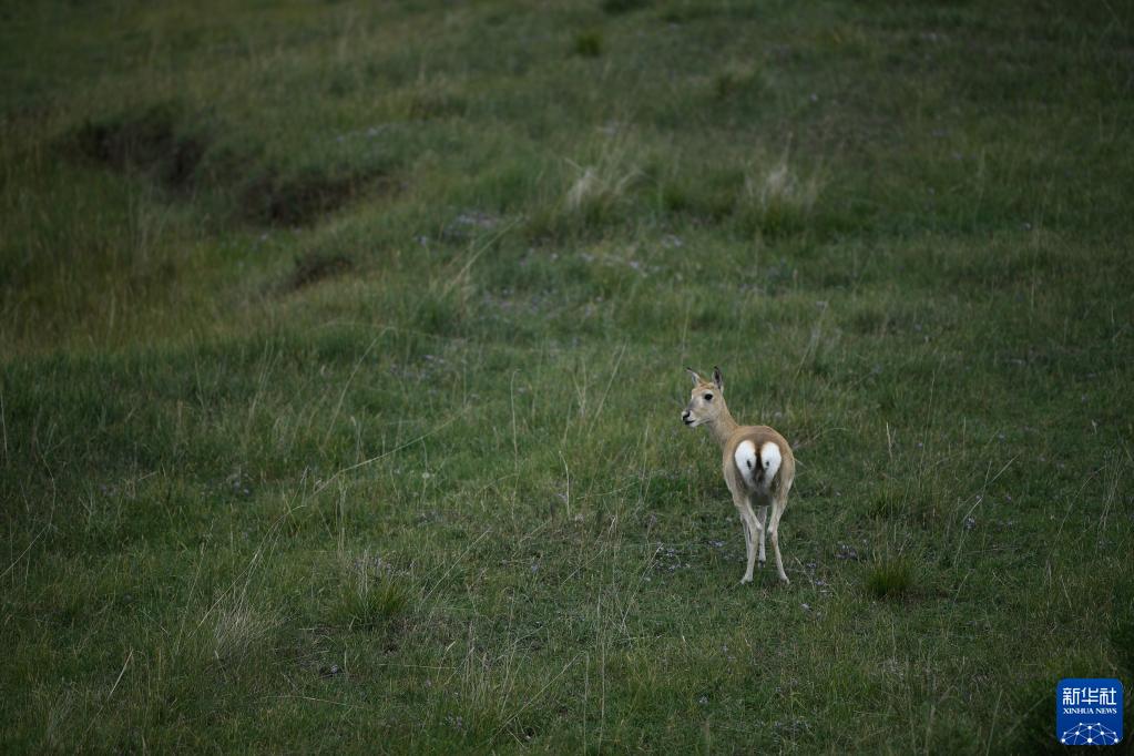 9月15日,一只普氏原羚在青海湖岸边的牧场内活动。