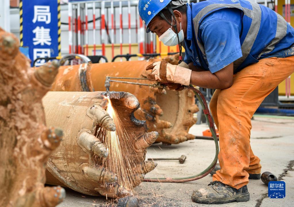 9月17日,施工人员在深圳地铁3号线四期工程坪地六联站工地作业。