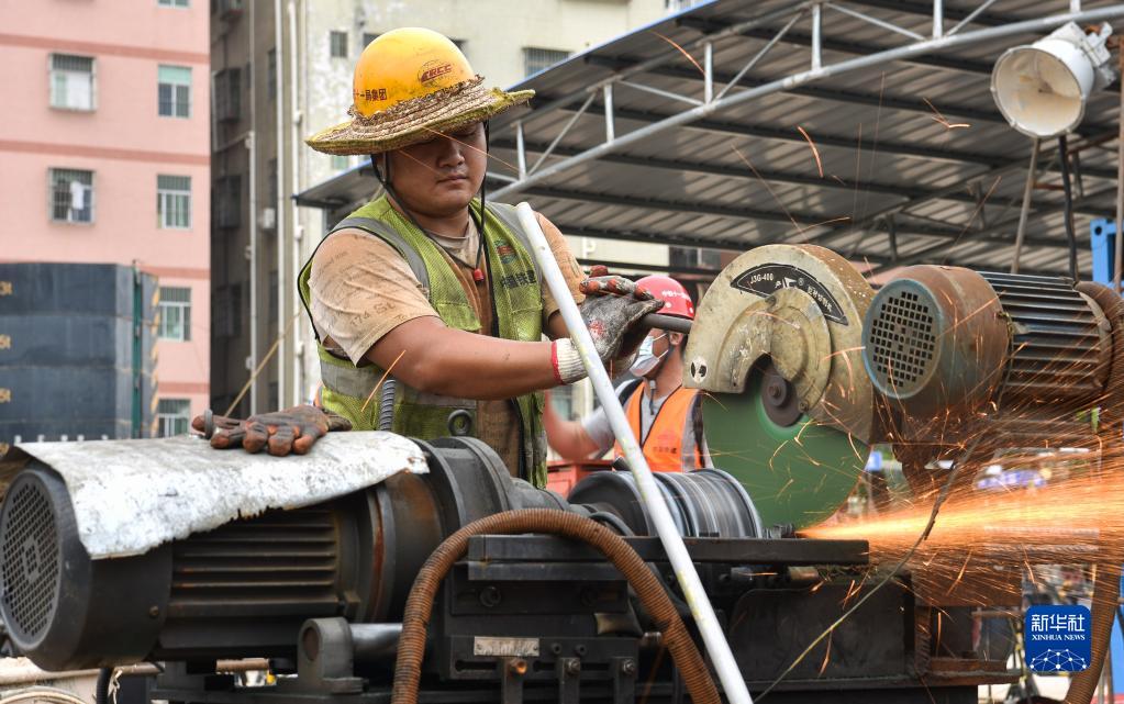 9月17日,施工人员在深圳地铁3号线四期工程坪地六联站工地作业。