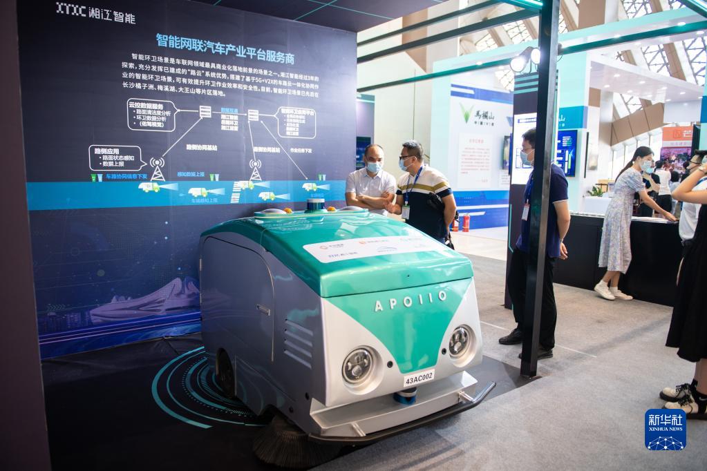 9月17日,观众在长沙国际会议中心了解智能环卫车。
