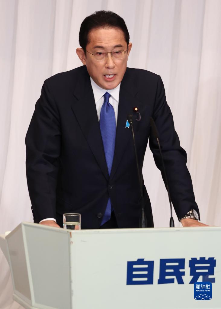 9月17日,在日本东京,岸田文雄在自民党总部发表竞选演讲。